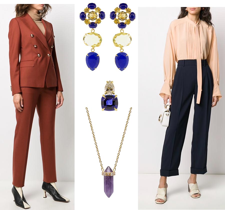 Les saphirs bleus ou violets auront fière allure avec des choses dans des tons beiges.