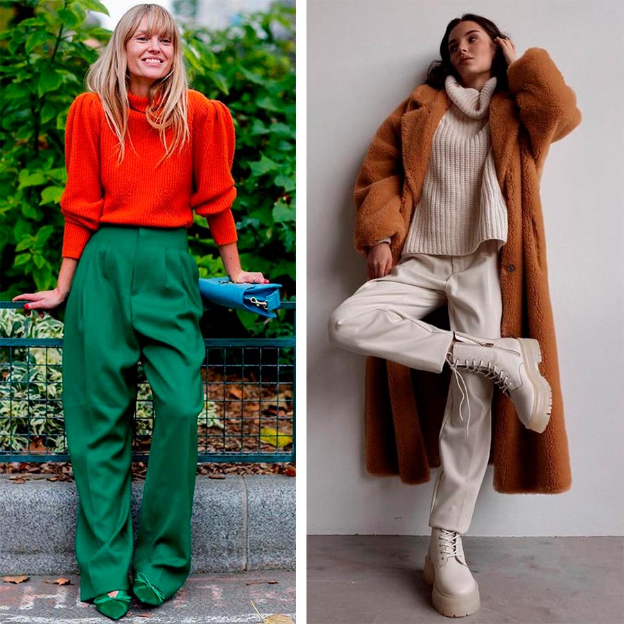 9. Pantalon avec des flèches. Des flèches droites strictes sont capables de réduire le volume des jambes et des hanches, et aussi avec l'aide d'elles, la silhouette est étirée, car les flèches elles-mêmes créent à nouveau une verticale.