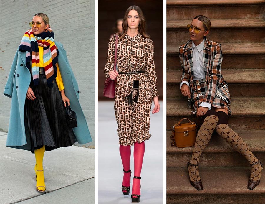 Le plus difficile à assortir, mais qui donne en même temps un grain de poivre à n'importe quelle image - des collants aux couleurs vives et imprimés.