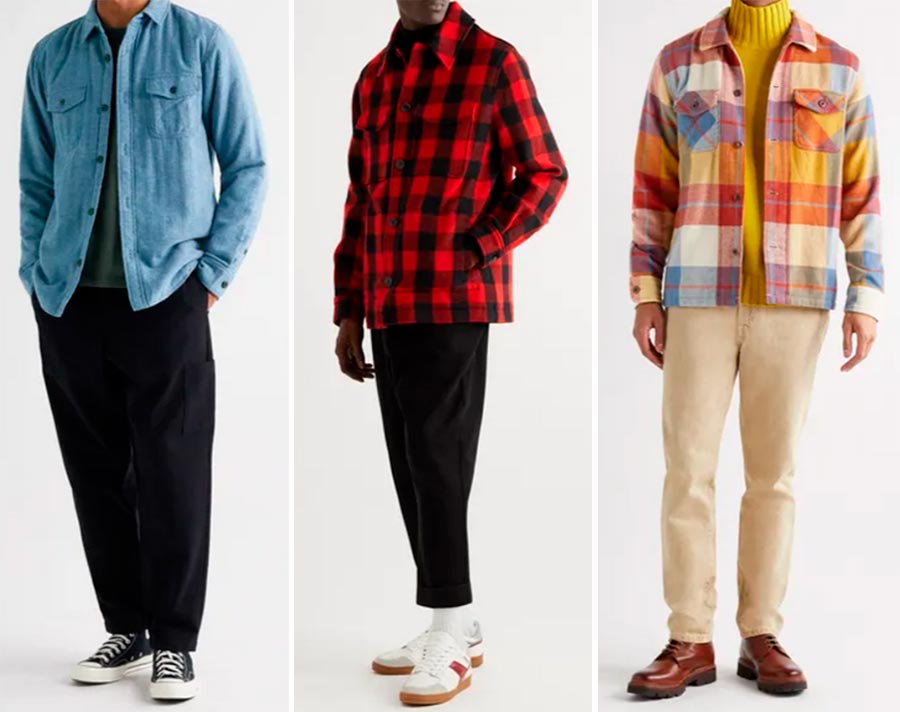Les trois looks avec des chemises peuvent être qualifiés de stylés, le premier pour le pantalon et les baskets de style actuel, le second pour la cage de bûcheron tendance et le pantalon court, le troisième pour le jeu audacieux avec la couleur.