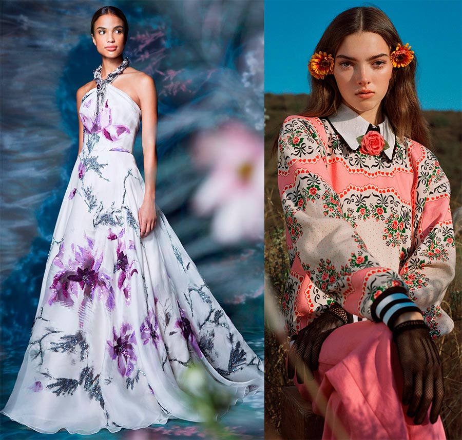 Les magnifiques fleurs s'épanouissent brillamment et joyeusement dans les collections d'Andrew Gn, Zuhair Murad, Badgley Mischka. Les imprimés floraux ne jouent pas un rôle majeur dans ces collections, mais ils ne peuvent pas être négligés ici.