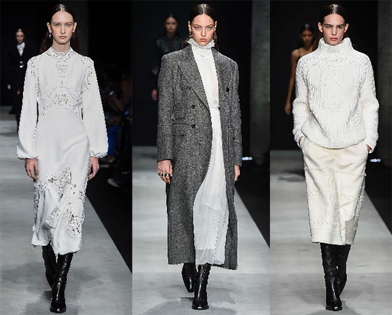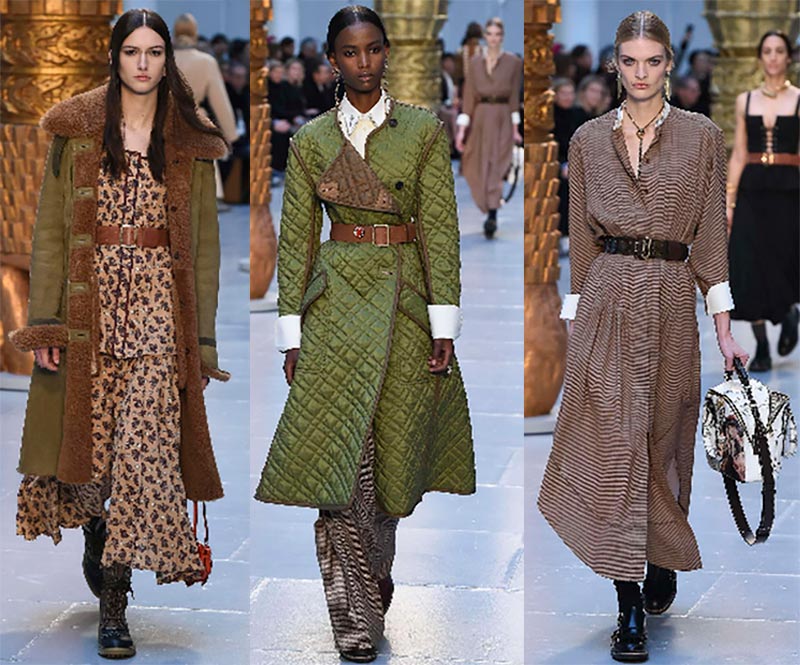 Chez Céline, attention aux robes midi à cols ajourés, aux médaillons massifs, aux manteaux en mouton, aux jupes-culottes larges. Les gilets avec fourrure à l'intérieur sont la tendance la plus compréhensible, et les modèles allongés créeront également les lignes verticales nécessaires qui affineront. Ces gilets peuvent être décorés de broderies faites à la main.