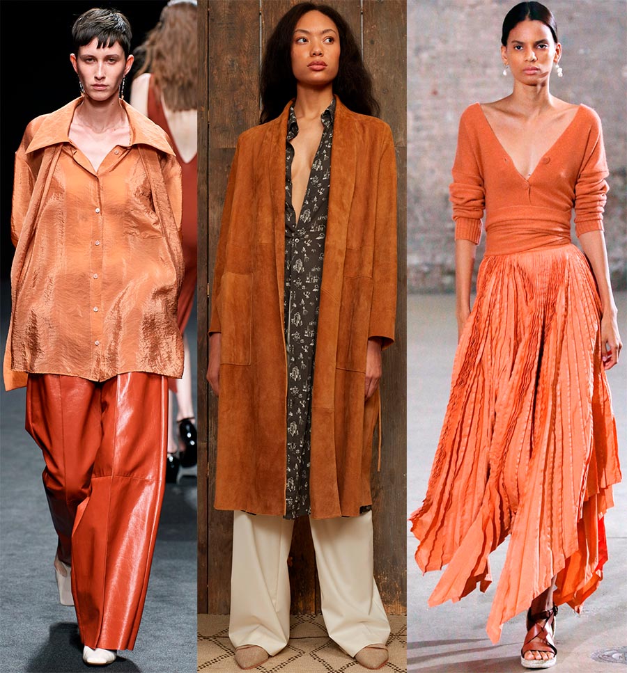 Parfois, des noms poétiques sont entendus à l'Institut de la couleur. Dans ce cas, ce n'est peut-être pas le cas, mais si l'accent est mis sur le corail brûlé, il devient alors clair qu'il ne s'agit pas d'une teinte brillante. Oui, en effet cette fois le choix s'est porté sur le corail pâle. Mais vous devez admettre qu'il a l'air luxueux dans une robe, une jupe et un pantalon.