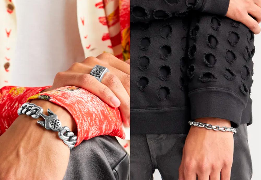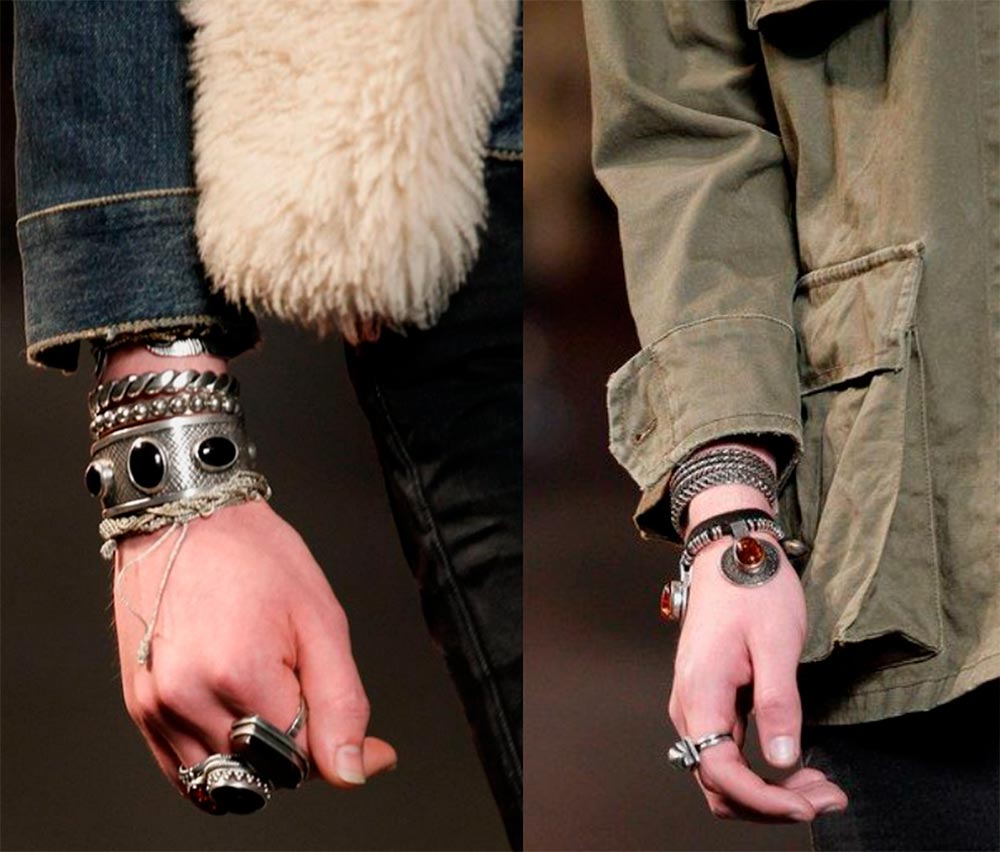 Lors de la création de bijoux pour hommes, les créateurs s'inspirent des classiques des maisons de joaillerie, de l'ethnicité et du symbolisme, de l'éclectisme, combinant différents styles en une seule pièce.