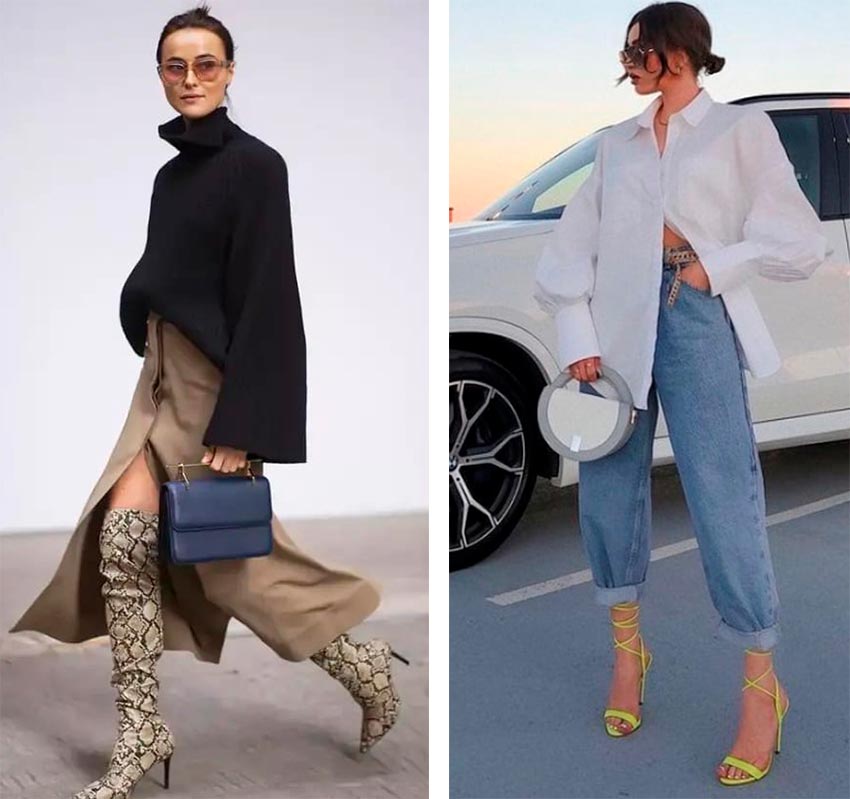 L'accent mis sur les accessoires élégants, à savoir les chaussures et les sacs, rendra même l'ensemble le plus simple inhabituel. En raison de chaussures intéressantes, l'attention des autres sera transférée des caractéristiques générales de l'image à la zone des jambes.