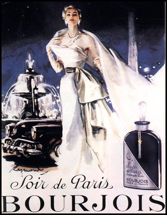 Et voici la France. Parfum Soir de Paris ("Soirée parisienne"), créé en 1928. La presse écrit : « C'est l'un des premiers esprits, véhiculant très subtilement l'air même de l'époque. C'est plus qu'un parfum - ce parfum incarne l'esprit et la magie du Paris moderne ... ».