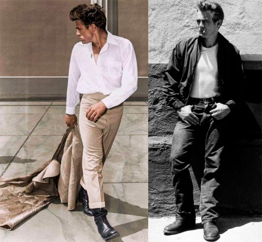James Dean - portait un blouson aviateur, des baskets blanches et est devenu une icône de style à l'adolescence.