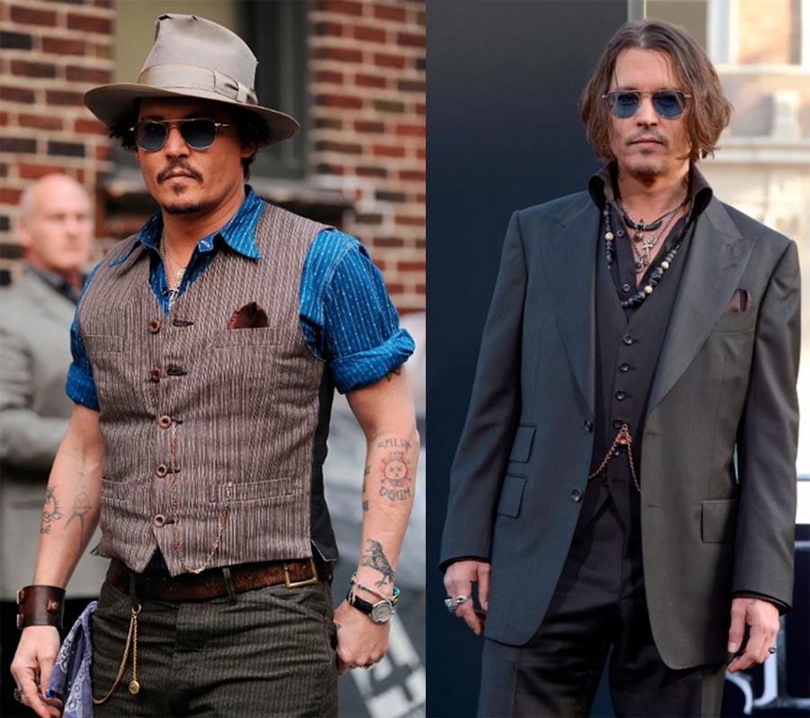 Johnny Depp a depuis longtemps trouvé son style et avec l'âge, le nombre de bijoux qu'il porte sous des costumes stricts et pas très stricts avec un gilet ne fait qu'augmenter avec l'âge.