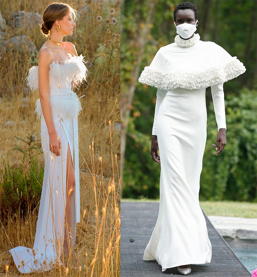 Les robes duveteuses à la mode avec des jupes en plusieurs couches de tulle seront excitantes cette saison. Un décor sous forme de dentelle, de broderie ou de strass ajoutera de la sophistication et de la splendeur aux robes de mariée. De charmantes robes de mariée minimalistes sont également présentées pour les amateurs de brièveté et d'élégance. Il faut aussi mentionner une mini robe longue, à la mode, intéressante et extraordinaire.