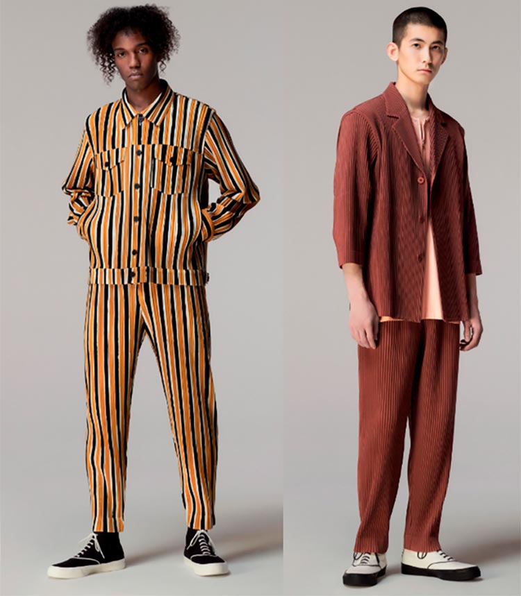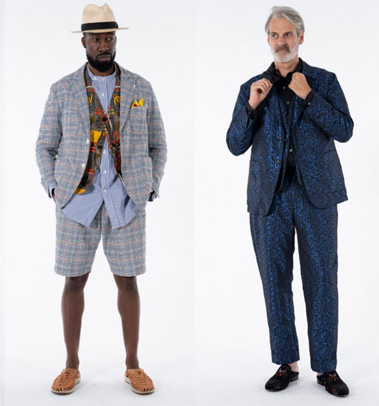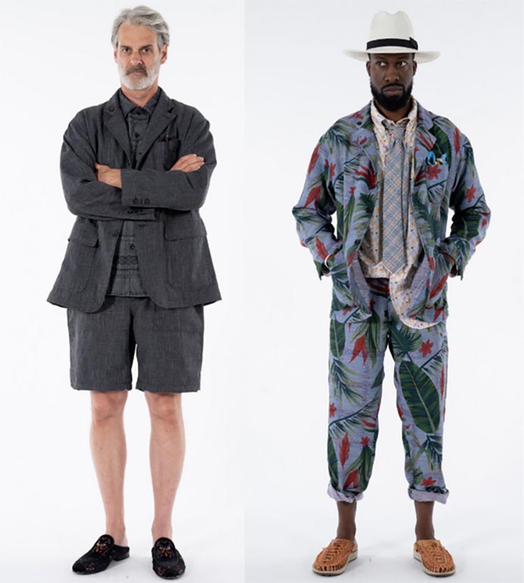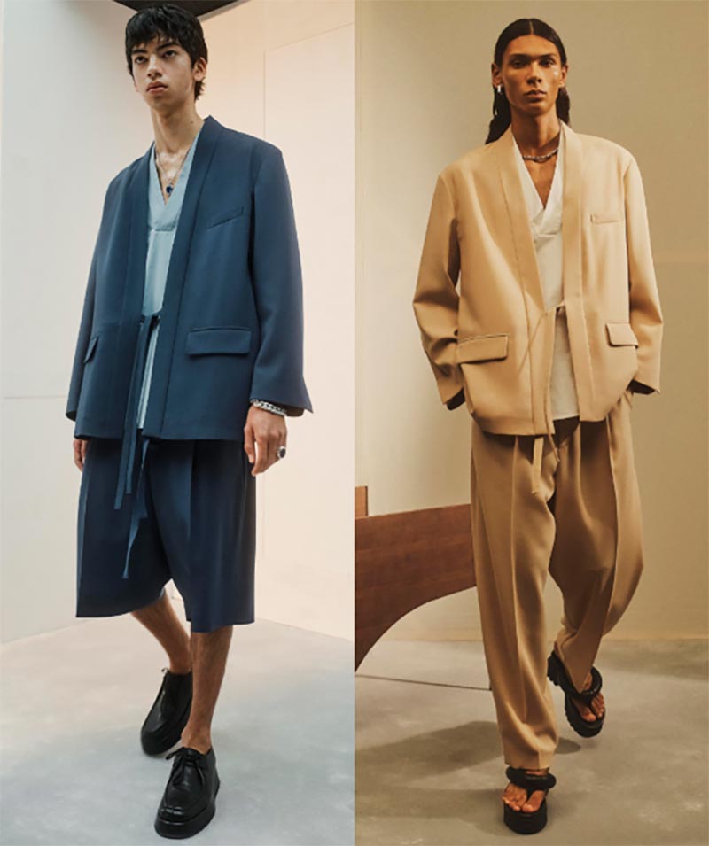 Embuscade Les vestes kimono avec des cravates, ainsi que les costumes d'été avec des shorts, sont populaires.