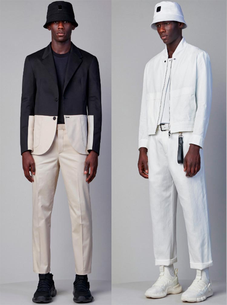 Neil Barrett Le costume peut être non seulement formel, mais aussi stylistiquement fonctionnel.Par exemple, vous pouvez combiner un pantalon d'un costume blanc avec une veste noire. Au lieu de richelieus, portez des baskets toujours tendance. Remplacez le chapeau par un chapeau Panama et la chemise par un T-shirt.