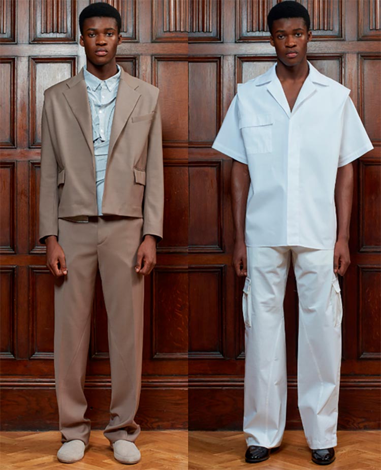 Bianca Saunders Le sujet de l'article est "les costumes pour hommes à la mode", ce qui signifie que nous ne parlons pas seulement de classiques. Les costumes en jean et en cuir sont pertinents.