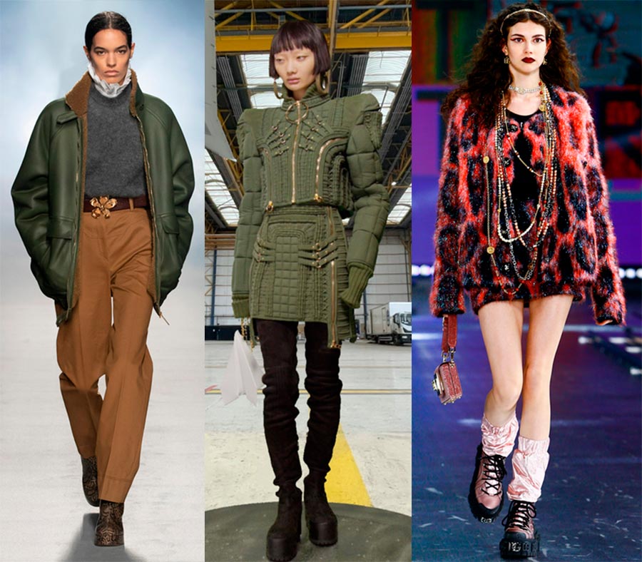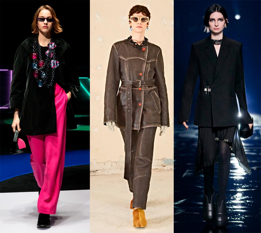 Parmi les nouvelles tendances lumineuses, on peut distinguer : le futurisme. De nombreuses marques ont sorti des modèles sur le podium en tenues scintillantes de l'espace... Les manteaux courts sont à la mode. La tendance la plus originale à laquelle vous ne voulez pas croire, ce sont les bottes hautes en fourrure. Elles étaient d'actualité il y a 15 ans, cette saison la marque Acne-Studios a brillamment démontré comment porter des bottes hautes en fourrure d'une nouvelle manière. La tendance mondiale actuelle est la nouvelle sexualité. De plus en plus aux défilés de robes transparentes moulantes. À partir de là, le style dramatique et le velours noir deviennent pertinents.