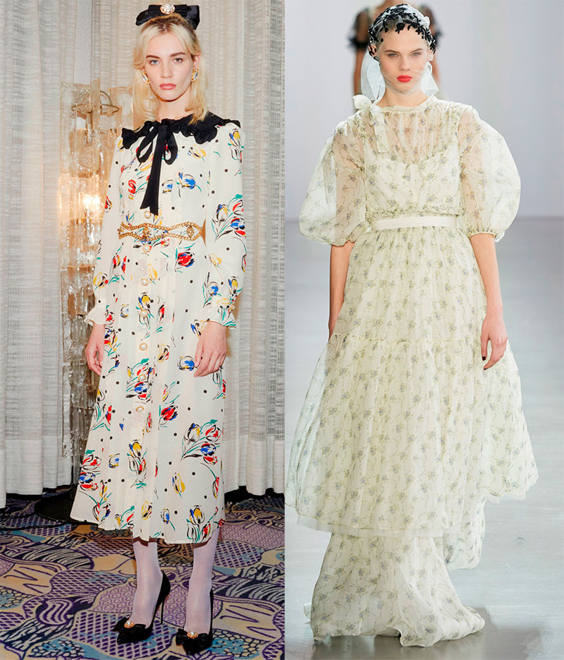 A cette époque, les femmes de la mode ont choisi non seulement des matières légères et légères, de la dentelle et des rubans, mais de plus en plus des imprimés floraux, mais la coupe élégante est restée et la robe s'est transformée en une tenue romantique. La longueur de la robe a également changé, selon la mode, la robe pouvait être longue ou courte, mais le plus souvent une robe midi était préférée.