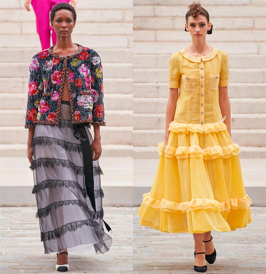 Il est à noter que même si Virginie Viard n'avait pas partagé d'où elle avait puisé les idées pour la nouvelle collection, on pouvait facilement deviner que les archives étaient la source de son inspiration. La nouvelle collection lit clairement l'ADN de la marque et même les messages de Coco Chanel elle-même. La couture, malgré toute sa sophistication forcée, s'est révélée vive et légère, ce qui est tout à fait dans l'esprit de Chanel.