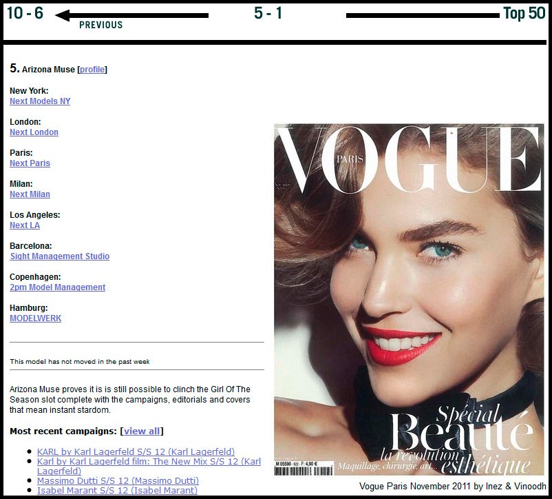 Aujourd'hui, elle se classe 5e dans le classement des mannequins les plus populaires au monde, selon models.com.