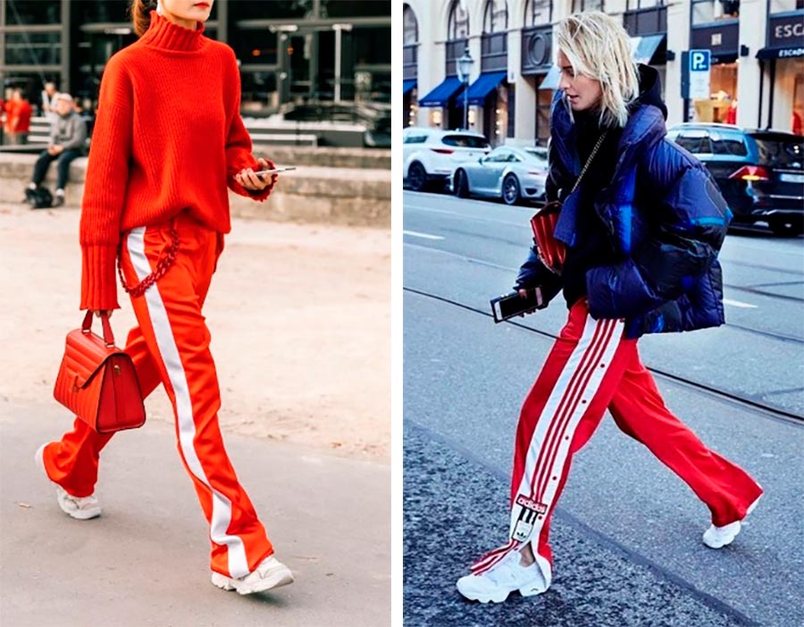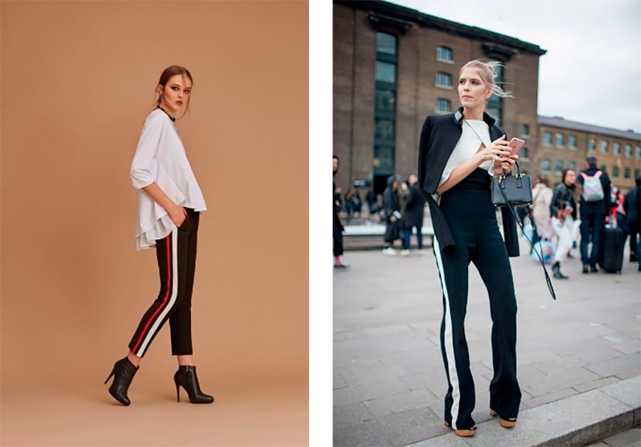 Pendant la saison froide, en choisissant entre une jupe et un pantalon, le choix se porte le plus souvent en faveur de ce dernier, puisque vous pouvez porter des sous-vêtements thermiques sous eux pour que vos jambes restent toujours au chaud. L'anti-tendance au pantalon peut être attribuée aux pantalons de type costume de coupe droite, avec ou sans flèches repassées, jusqu'au milieu du talon. Ces pantalons sont souvent accompagnés ou non de vestes à simple boutonnage à un bouton.
