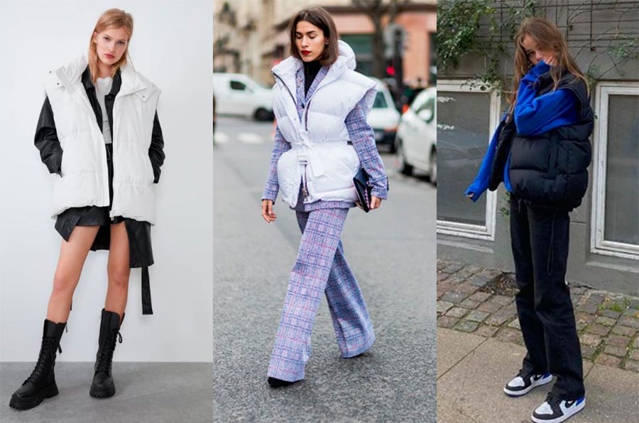 Pour les amateurs d'un mode de vie actif, un gilet bouffant peut également être une base. Ici, il est important de se rappeler une coupe libre, ne choisissez pas des gilets ajustés. Les gilets très fins sont mieux utilisés comme doublure pour l'isolation sous un trench-coat ou un manteau.