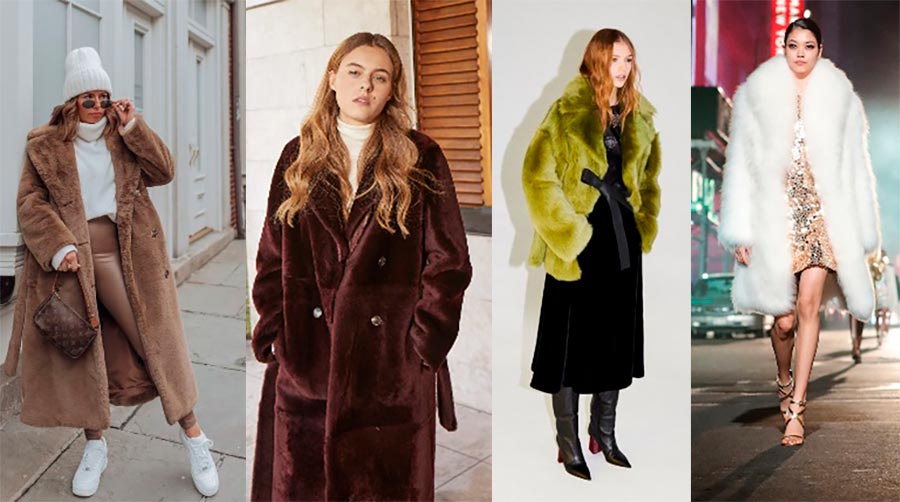 Un manteau de fourrure moderne de coupe droite avec un col anglais, de préférence en fourrure peluche. Les options de manteau de fourrure faites dans la coupe d'un manteau-robe sont également pertinentes. Longueur midi et maxi.