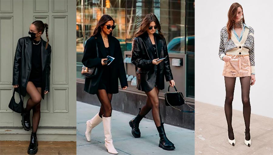 Pour la période automnale, lorsqu'il ne fait pas encore froid et que vous souhaitez vous étaler en mini, vous ne devez pas porter de collants moulants, ce n'est plus d'actualité. Si vous enfilez une robe légère d'une garde-robe d'été avec des collants à l'automne, à travers lesquels la peau ne transparaîtra pas, cela alourdira simplement l'image. Ne choisissez pas un nylon dense de couleur foncée, mais de préférence 30-40 den.
