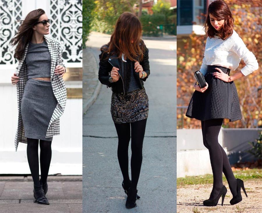 Les collants en nylon translucide se marient bien avec des robes, des jupes et des shorts en tissu dense. Pour l'hiver, quand il fait déjà assez froid, des collants épais iront bien en complément des vêtements chauds, quand il est clair que la jupe ou le short ne sont pas de style volant, mais gardent leur forme. Les collants nude moulants restent l'anti-tendance. Après tout, c'est même étrange quand, par temps sous zéro, vous avez soi-disant les jambes nues. J'ai vu des options similaires sur des sites chinois, quand il y a presque de la fourrure à l'intérieur, mais de l'extérieur, elles sont de la couleur de la peau. Dans ce cas, il vaut mieux choisir des collants noirs ou colorés.