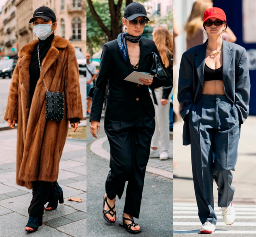 Essayez de porter un manteau de vison à la mode, en l'associant à une casquette de baseball et à un sac à main noir Paco Rabanne. Les casquettes de baseball dans la mode de la rue ne sont pas mélangées avec des robes féminines, mais avec des costumes pour hommes.