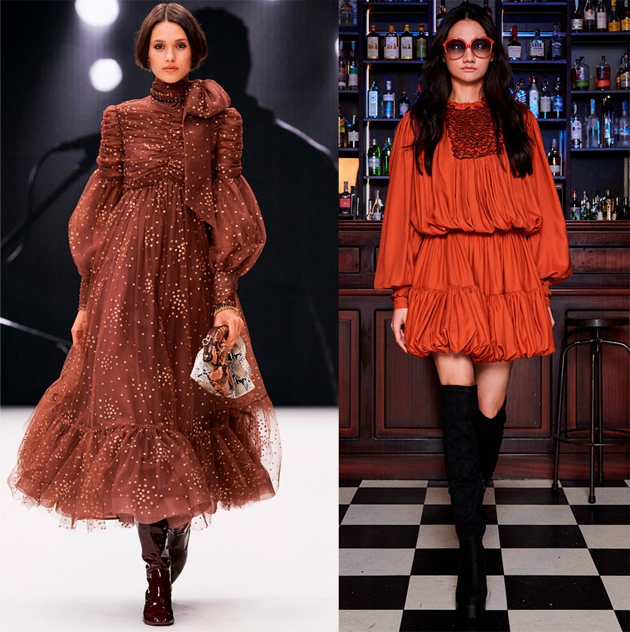 Dans la nouvelle saison automne-hiver 2025-2026, les volants à volants et les volants restent, la silhouette est libre, mais reste raisonnable. Les concepteurs proposent des longueurs midi et maxi pour de tels modèles. Alors faites votre choix.