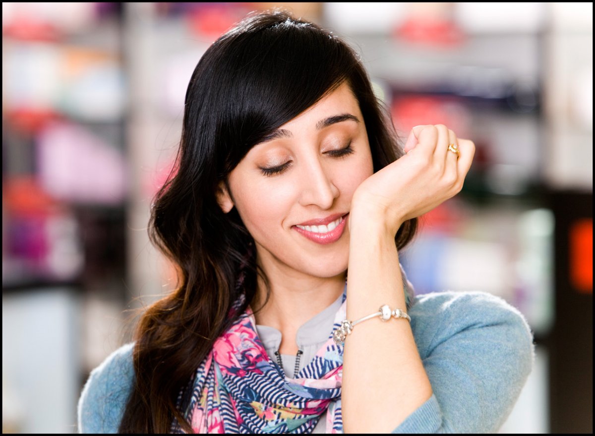 Choisissez-en un dans le magasin flairer et vaporisez-le sur votre poignet, oui, sur votre poignet, pas sur vos vêtements, pas sur la bande de sonde, mais sur la peau de votre main délicate. Respirez le parfum plusieurs fois, sentez-le et faites la première impression. Promenez-vous ensuite parmi les étagères scintillantes, regardez de plus près et choisissez-en une deuxième, que vous pourrez utiliser pour remplir votre deuxième poignée. Respirez le deuxième parfum et faites bonne impression. Après cela, faute d'une troisième main, vous pouvez aller faire vos courses ou chez vous, travailler...