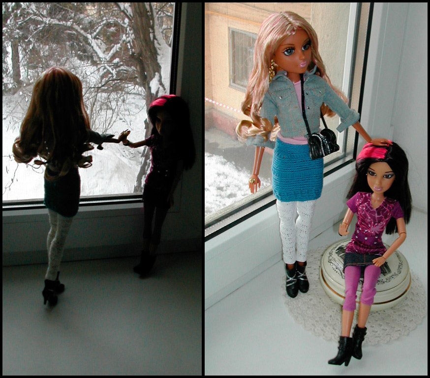 En général, les poupées Liv ne sont en aucun cas inférieures à Barbie ou à Moxie Teens, et même supérieures à certains égards. Par exemple, la flexibilité d'une poupée, dans cette Liv est en avance sur Moxie et Barbie. Les bras et surtout les jambes se plient mieux et tiennent mieux les poses données. De plus, les poupées Liv ont fière allure avec les jambes ouvertes. L'articulation du genou de Moxie n'est pas très bonne et je préfère les porter soit dans des collants, des jeans, soit dans des robes longues et des jupes. Et avec les poupées Liv, tout est plus libre - lorsque les jambes ne sont pas pliées au genou, elles ont l'air réalistes, on pourrait dire magnifiques et cela permet de mettre des shorts et des jupes courtes sans collants sur les poupées Liv.