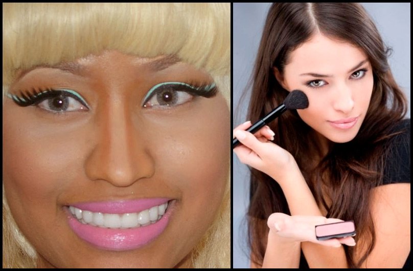 Un nez trop large peut être visuellement rétréci si ses surfaces latérales sont recouvertes de poudre de teintes plus foncées que sur l'ensemble du visage. Poudrez un nez court partout, et avec une poudre plus légère que votre visage. Et trop long "raccourcir" avec une couleur plus foncée, ne le poudrant pas jusqu'au bout.