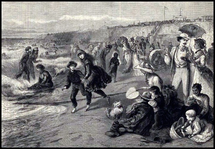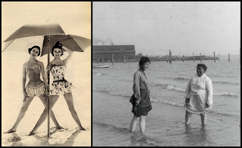 Au XIXe siècle, avec l'avènement du chemin de fer et l'essor des stations balnéaires sur les côtes de France et d'Angleterre, les vacances à la plage sont devenues particulièrement populaires. Les plages étaient divisées en moitiés distinctes : hommes et femmes, des cabines à langer apparaissent sur les plages.