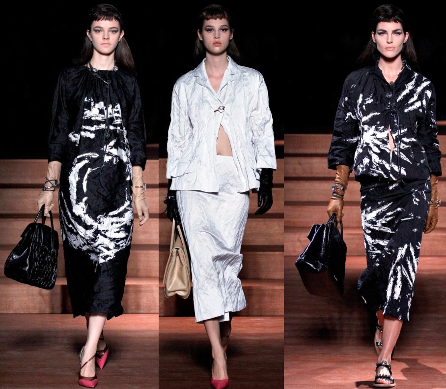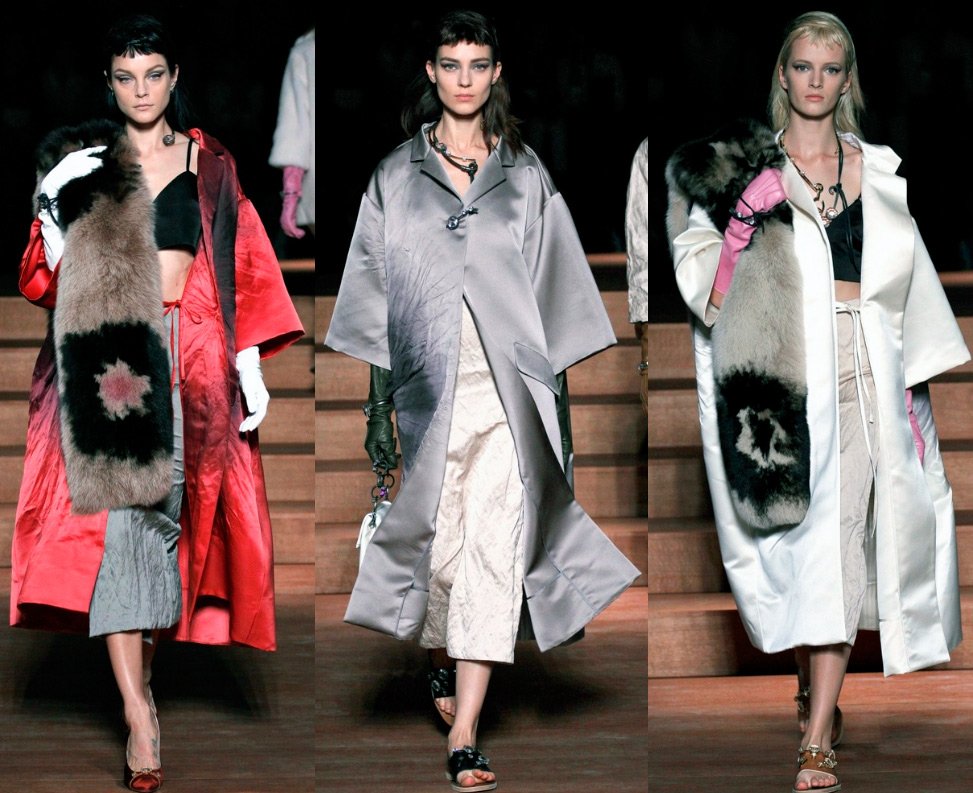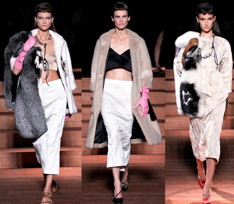 Et dans la collection d'été de Miu Miu, il y a beaucoup de fourrure - boa de zibeline, manteaux de vison, manteaux de fourrure. Peut-être Miuccia Prada entrevoit-elle simplement un refroidissement global après la fin du monde en décembre 2026 ?