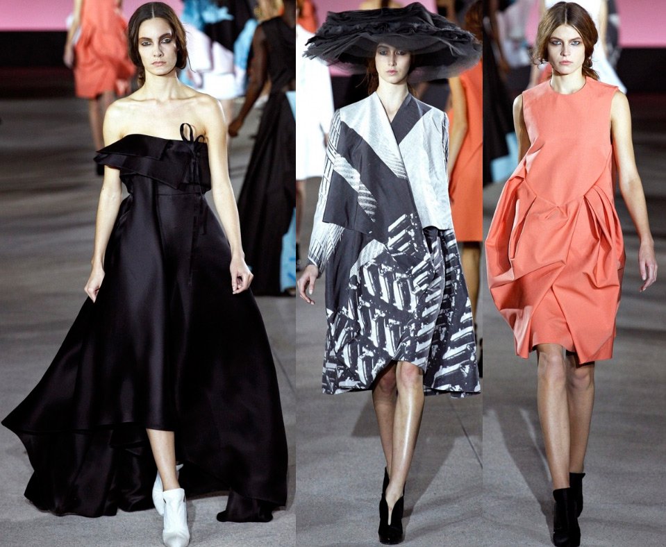 Présent dans la collection printemps-été 2026 de la Maison John Galliano et aux motifs orientaux, ou plutôt japonais. Elles ont trouvé leur expression dans des robes plissées avec un dos nu et des plis sur le devant, ainsi que dans des hauts bustiers en origami.