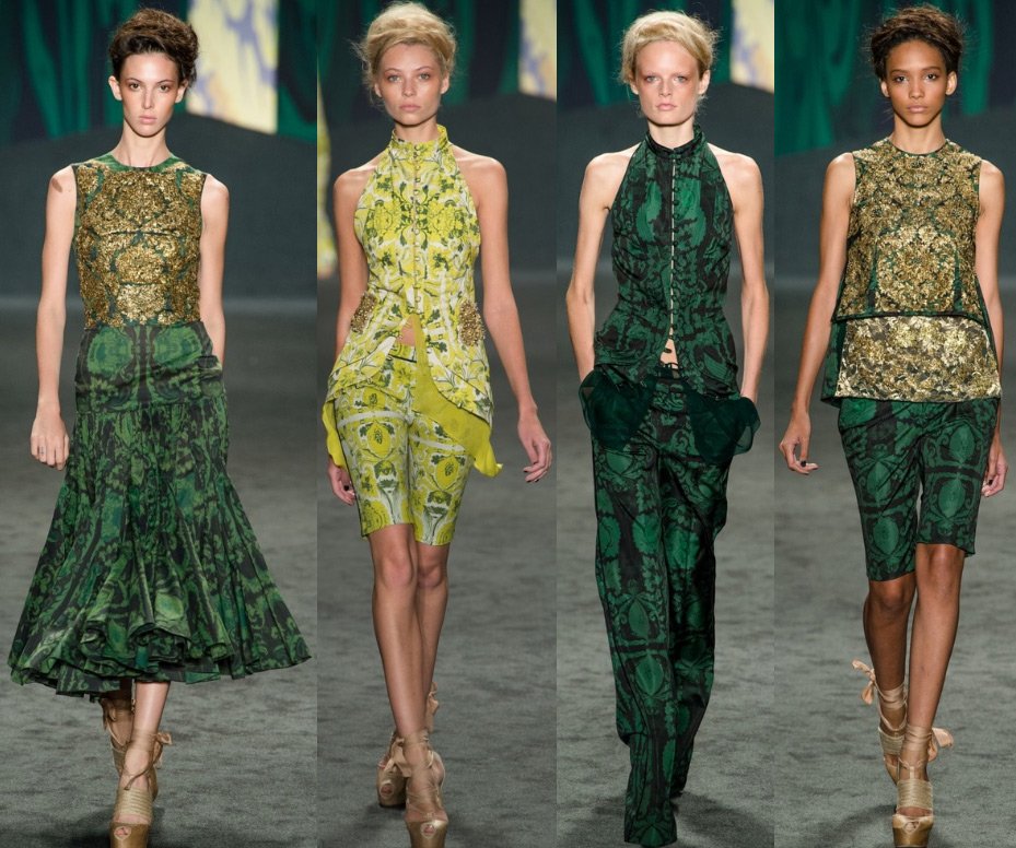 Vera Wong est la reine de la robe de mariée, et sa collection, bien que des vêtements de prêt-à-porter, était pleine de blanc et de dentelle. Mais le motif principal qui a inspiré le designer pour créer cette collection était la culture de l'Inde, qui est confirmée par les couleurs et les motifs de la collection.