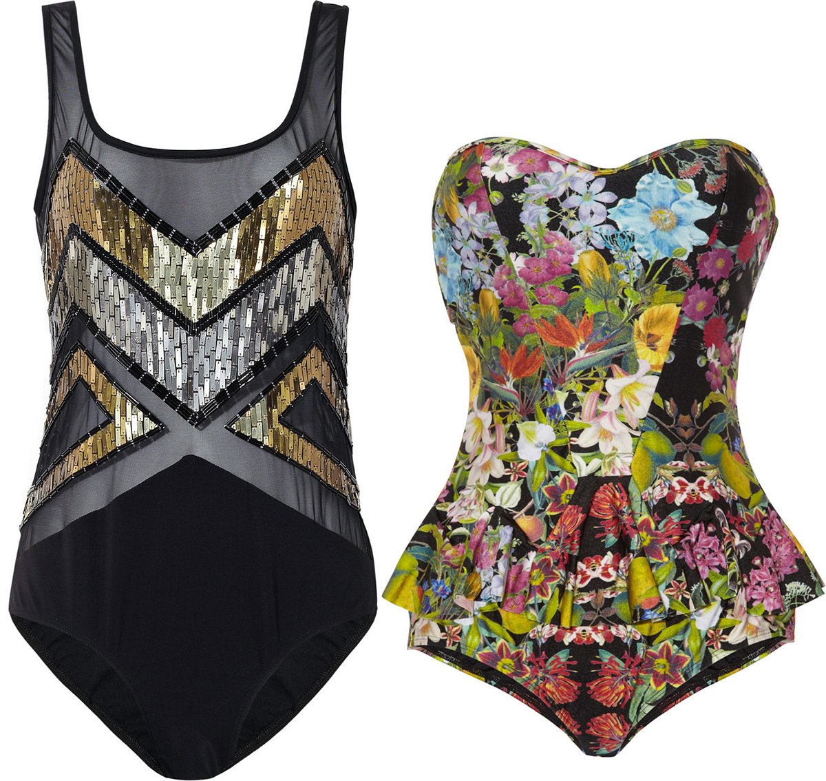 Pour ceux qui veulent s'affiner, l'imprimé aidera. Vous avez juste besoin de faire le bon choix.A noter que les maillots de bain à gros motifs vous feront grandir, donc faites attention à l'imprimé à rayures verticales ou diagonales. Le dessin attire l'attention. Par conséquent, votre tâche consiste à choisir un maillot de bain avec un motif intéressant dans les endroits qui ne vous posent aucun problème.